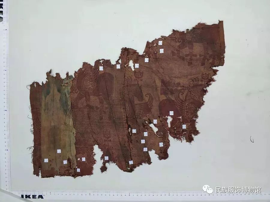 SC19紅地翼馬紋錦殘片修復(fù)前