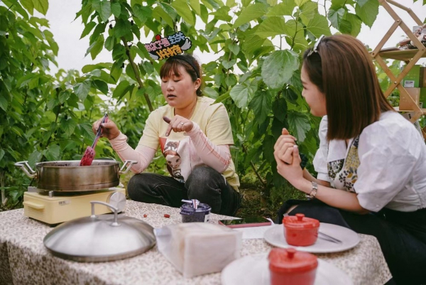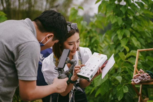 “這個(gè)五一小長(zhǎng)假,到果園品鮮果、喝春桑茶、飲桑果酒,真是不錯(cuò)喲!”在江津石蟆桑葚基地果園,主播正在介紹,“現(xiàn)在是吃桑葚的季節(jié),每一粒桑葚都非常飽滿,水分也多,味道很清甜。”主播們一手拿著桑葚,一手拿著手機(jī)直播著。