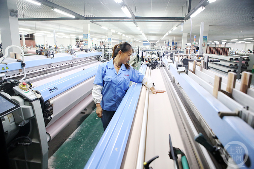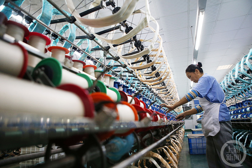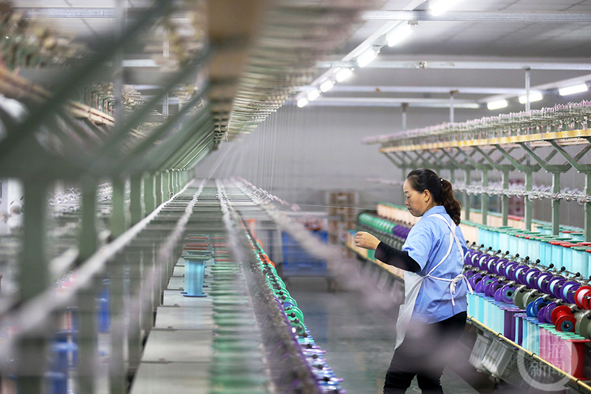 10月9日,女工在工業(yè)園區(qū)花神絲綢紡織有限公司生產(chǎn)車(chē)間進(jìn)行并絲勞作。