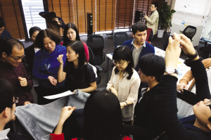 國家紡織產(chǎn)品開發(fā)中心主任李斌紅、EACHWAY(藝之卉)時(shí)尚集團(tuán)首席設(shè)計(jì)師趙卉洲與創(chuàng)新聯(lián)盟成員企業(yè)代表探討面料設(shè)計(jì)。