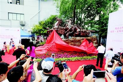。ㄓ浾 李國東 攝影報道)昨日,成都文殊坊西大門牌坊下,南方絲綢之路地標“崛·燁”正式揭幕。