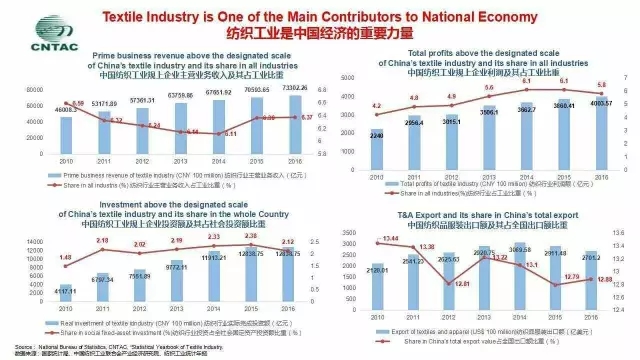 中國紡織工業(yè)在全球的重要地位凸顯,同時,紡織工業(yè)也是中國經(jīng)濟的重要力量——在2017國際紡織制造商聯(lián)合會年會上,國際紡聯(lián)副主席、中國紡織工業(yè)聯(lián)合會會長孫瑞哲發(fā)表演講時,通過大量統(tǒng)計數(shù)據(jù)陳述了這一觀點。