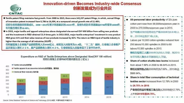 通過研究新材料(纖維開發(fā)、材料應(yīng)用)、新工具(智能制造、社會責(zé)任)、新內(nèi)涵,樹立產(chǎn)業(yè)文化自信,提升產(chǎn)品附加值與時尚話語權(quán),來打造“創(chuàng)新驅(qū)動的科技產(chǎn)業(yè)、責(zé)任導(dǎo)向的綠色產(chǎn)業(yè)、文化引領(lǐng)的時尚產(chǎn)業(yè)”的中國紡織工業(yè)“新定位”。